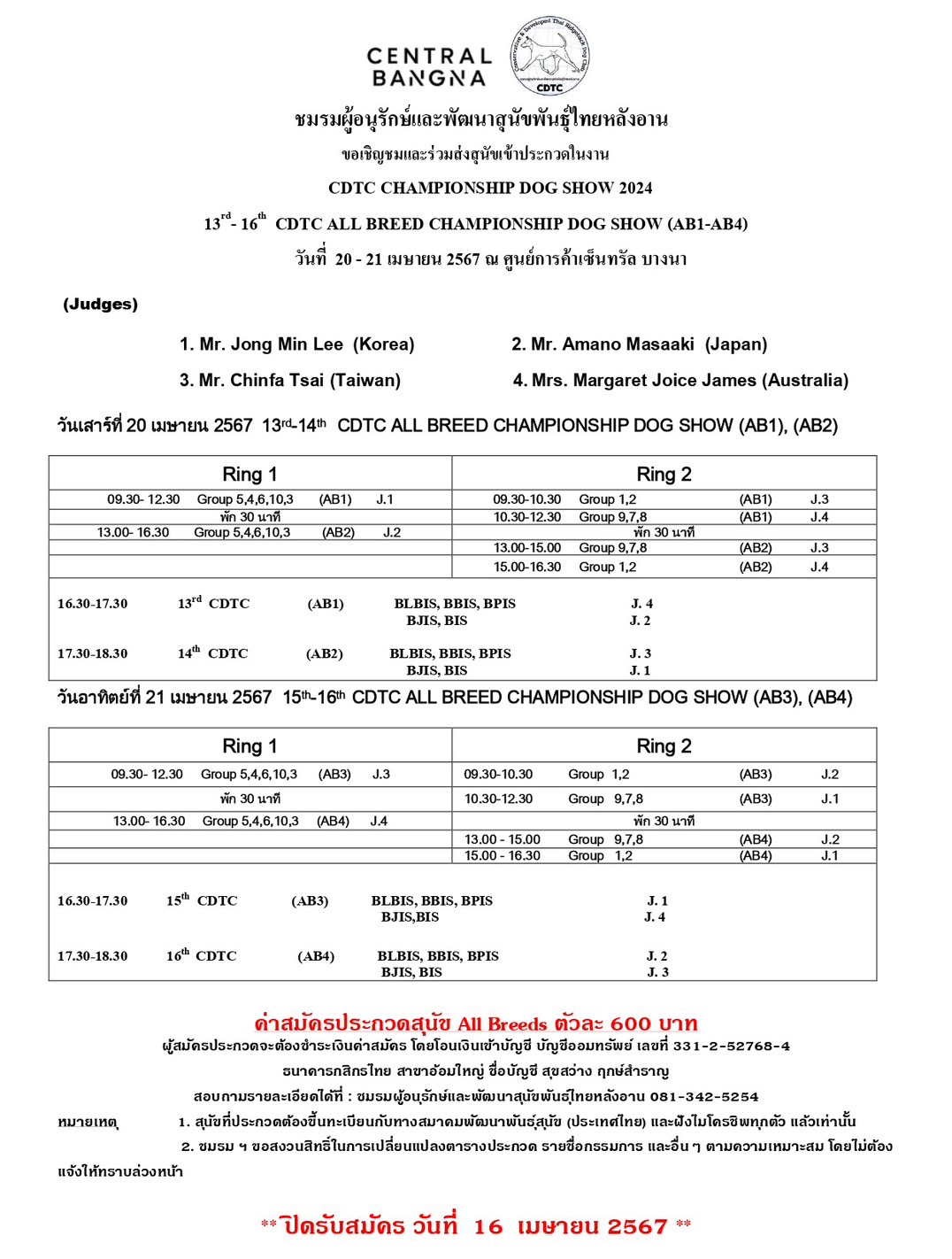ตารางประสุนัข / Schedule (20-21 Aprill 2024)