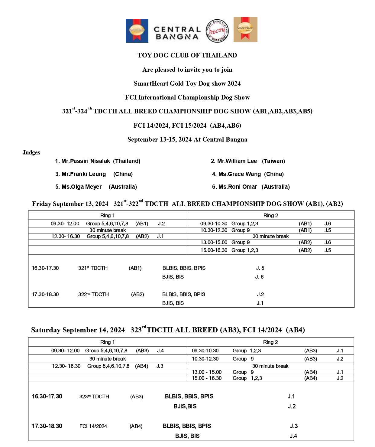 ตารางประสุนัข (ไทย- ENG) / Schedule - Eng. (September 13-15, 2024)